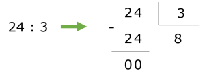 Recuerda que una fracción es una división. Por ello, para calcular la tercera parte de 24 realizamos la siguiente división: